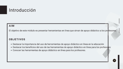 El objetivo de este módulo es presentar herramientas en línea que sirvan de apoyo didáctico a los profesores.